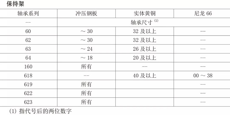 深溝球軸承通常使用鋼板沖壓浪形保持架,也可采用其他類型,如:尼龍 66 保持架或車制黃銅實體保持架。
